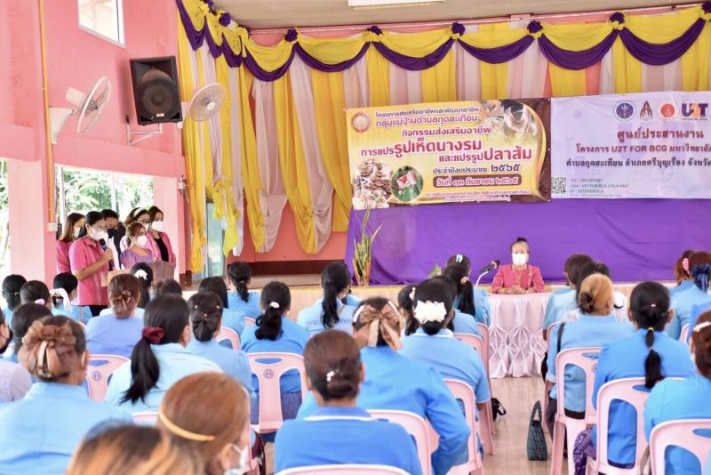 กุดสะเทียน (กิจกรรมส่งเสริมอาชีพการแปรรูปเห็ดนางรมและแปรรูปปลาส้ม) ประจำปีงบประมาณ 2565 ร่วมกับศูนย์ประสานงาน "โครงการ U2T มหาวิทยาลัยขอนแก่น" ร่วมสร้างแพลตฟอร์มใหม่ การสร้างตลาดออนไลน์ในเว็บไซต์ของ อบต.กุดสะเทียน โดยมีวิทยากรบรรยายให้ความรู้สาธิตการแปรรูปปลาส้มและแปรรูปเห็ดนางรม เพื่อส่งเสริมความรู้และทักษะด้านอาชีพให้แก่กลุ่มแม่บ้าน สตรีและประชาชนทั่วไป สร้างโอกาสและทางเลือกในการประกอบอาชีพ เพื่อเป็นการเพิ่มรายได้ให้แก่ตนเองและกลุ่ม ทั้งยังเป็นการรวมกลุ่มกันทำกิจกรรมของแม่บ้าน สตรีและประชาชนทั่วไป ในเขตพื้นที่ตำบลกุดสะเทียน ณ หอประชุมองค์การบริหารส่วนตำบลกุดสะเทียน อำเภอศรีบุญเรือง จังหวัดหนองบัวลำภู การดำเนินกิจกรรมดังกล่าวเป็นไปด้วยความเรียบร้อย
